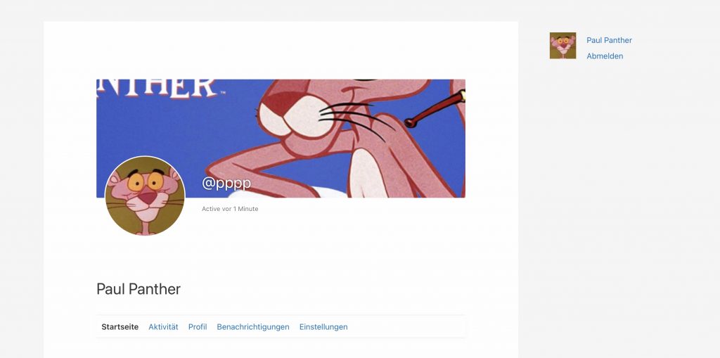 Nach der Anmeldung kommt man durch Klick auf den Benutzernamen oder durch Klick auf das Profilbild auf das persönliche Menü.